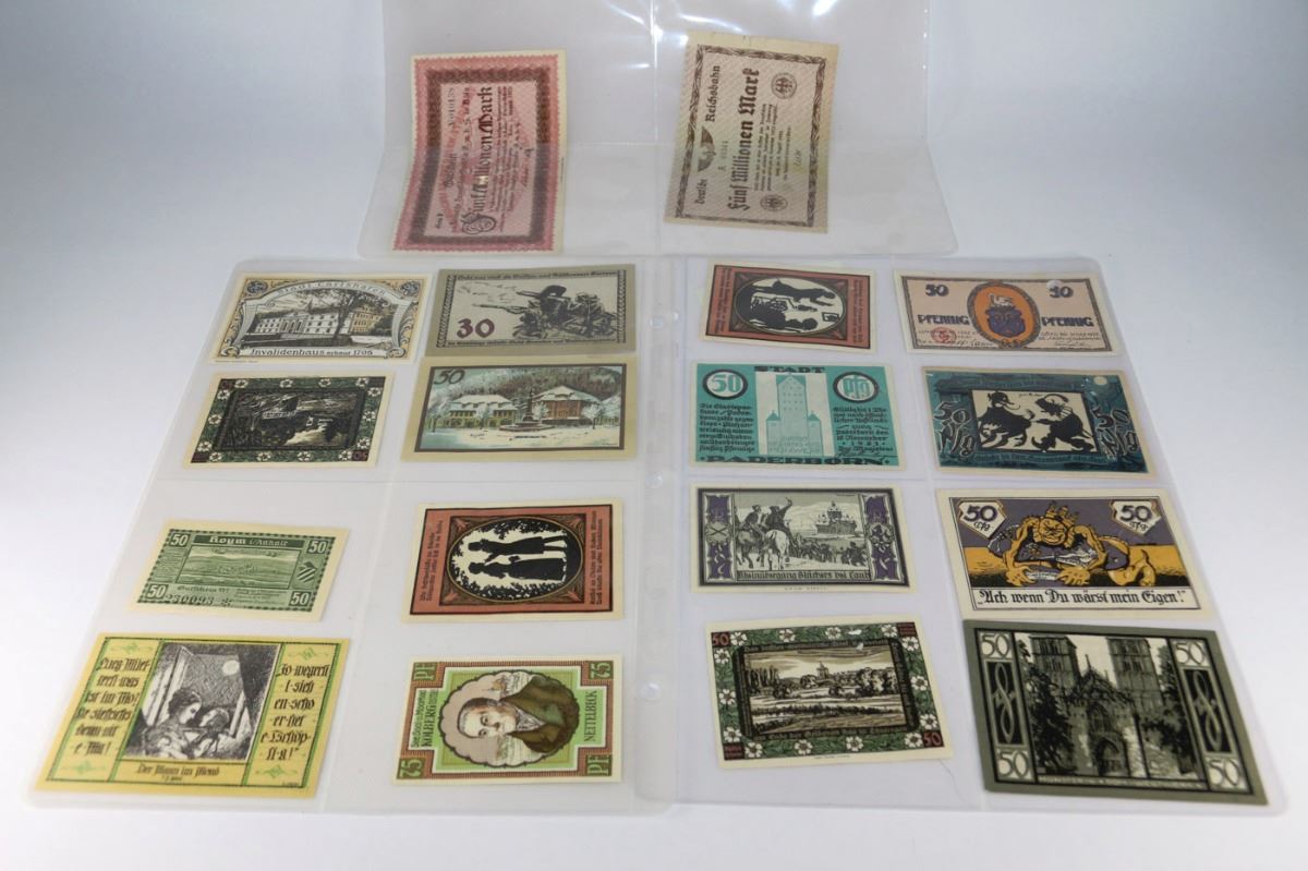 COLLECTION OF GERMAN CURRENCY IN 3 PLASTIC SLEEVES