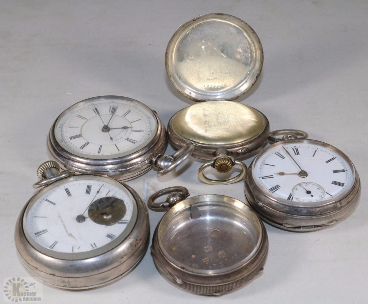 COLLECTION OF SILVER POCKET WATCHES + CASES