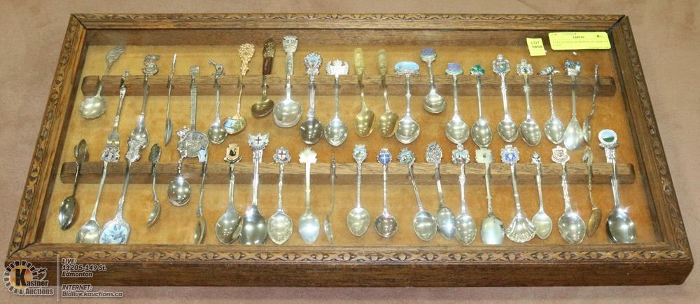 COLLECTION OF SPOONS IN DISPLAY CASE