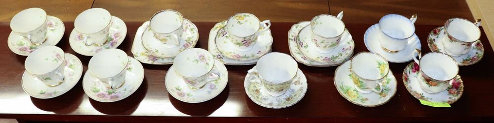 SAUCERS AND 3 ROYAL ALBERT TRIO CUPS, SAUCERS AND SQUARE CAKE PLATES