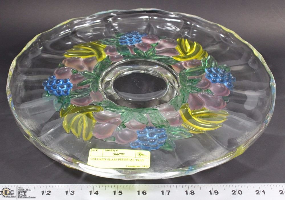 COLORED GLASS PEDESTAL TRAY