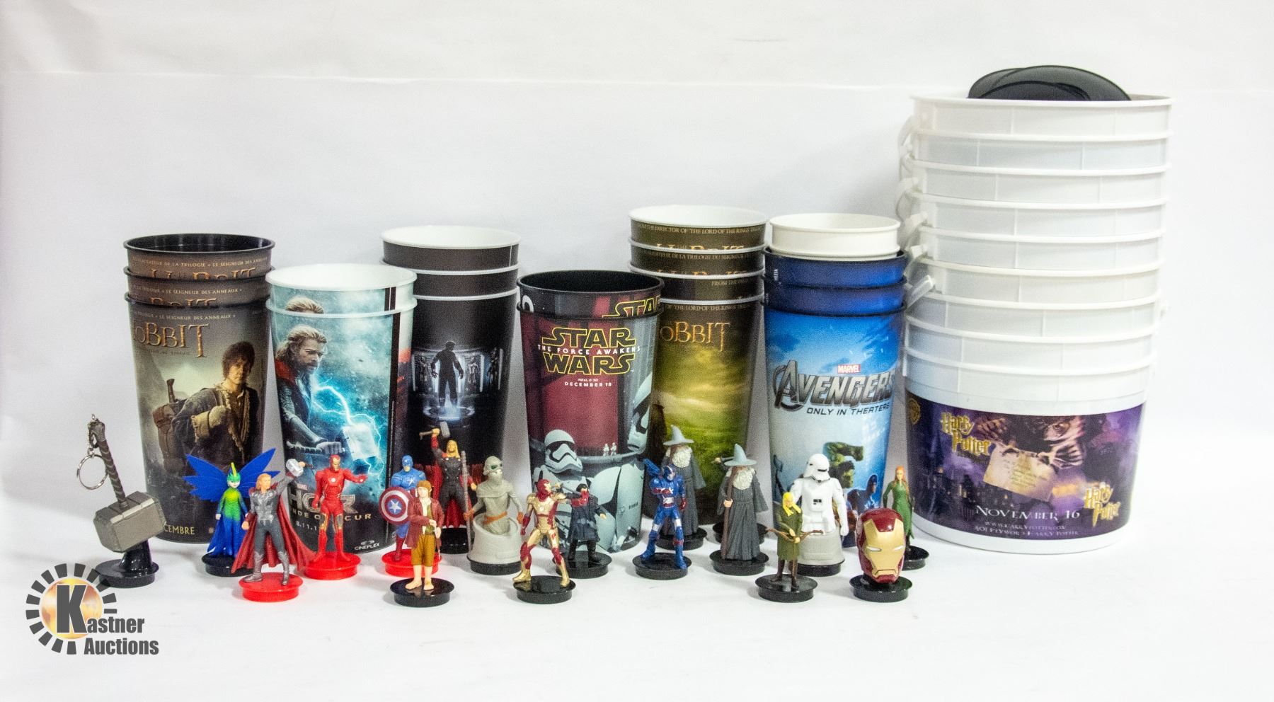 MOVIE PROMOTIONAL POPCORN BUCKETS AND DRINK CUPS WITH MATCHING FIGURES **ALL ITEMS MUST BE REMOVED BY 5PM SATURDAY, FEBRUARY 10TH 2024. ALL REMAINING ITEMS WILL BE SUBJECT TO A $6.00 PER DAY STORAGE CHARGE. ANY ITEMS REMAINING AFTER MONDAY, FEBRUARY 26TH, 2023 WILL BE CONSIDERED FORFEITED. NO REFUNDS WILL BE ISSUED FOR FORFEITED ITEMS. TO SCHEDULE A PICK UP APPOINTMENT CLICK HERE