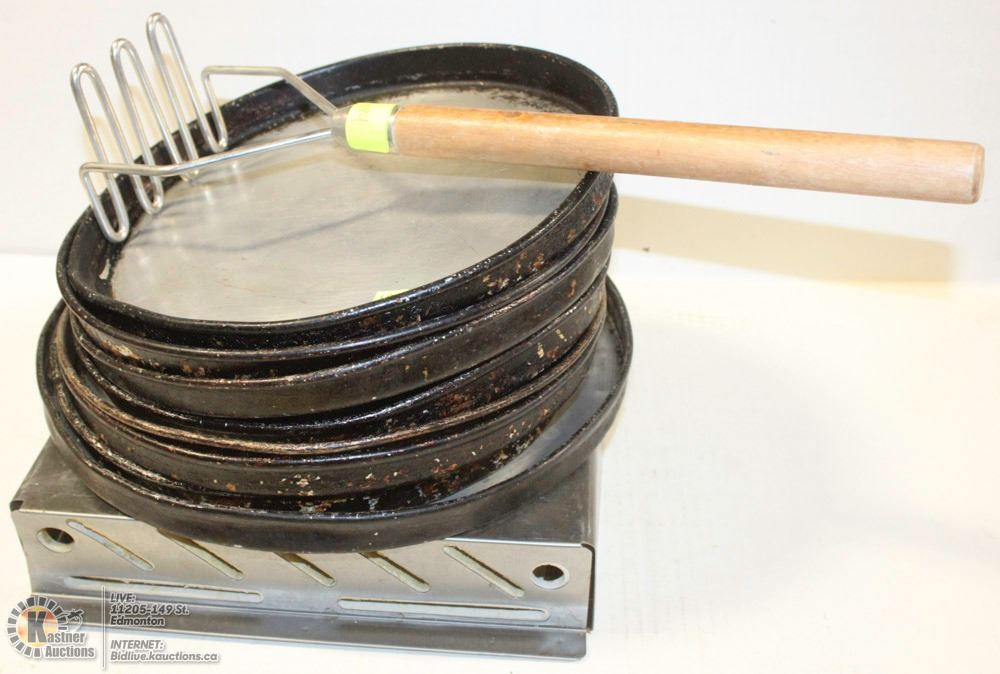 COMMERCIAL POTATO MASHER + PIZZA PANS
