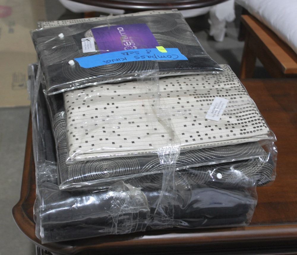 FULL SETS INCLUDING: 2 EURO PILLOWS CASES, 2 INTERMEDIATE PILLOWS CASES, 2 KIDNEY PILLOWS CASES, 1 BALL PILLOW CASE, 1 DUVET COVER, 1 BED SKIRT