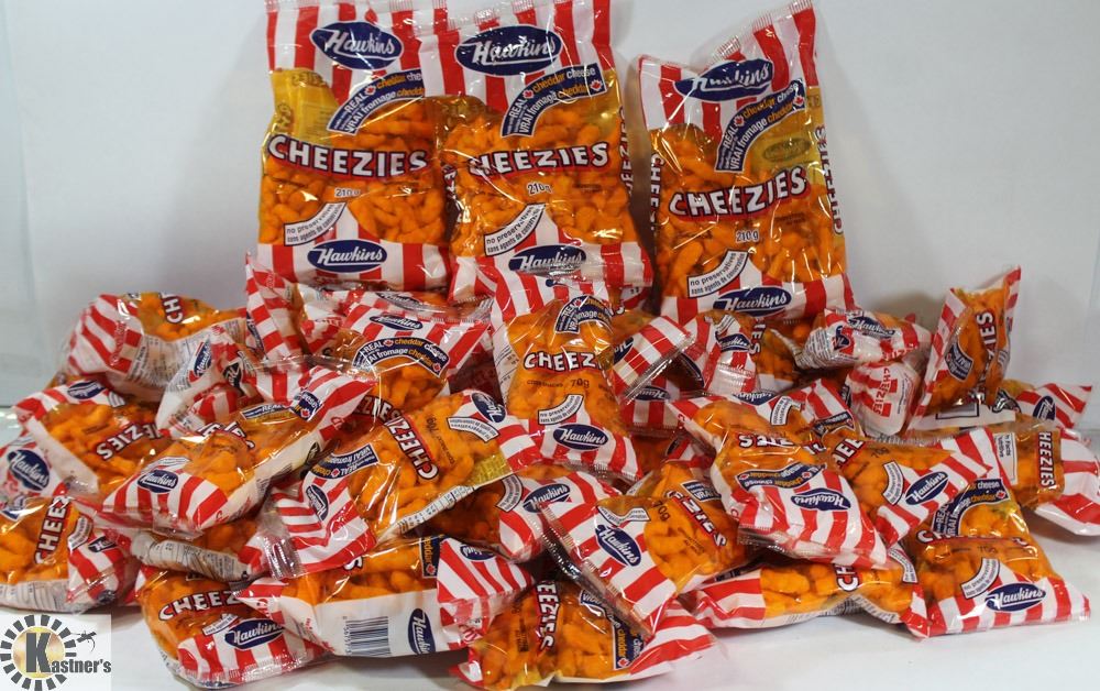 HAWKINS CHEEZIES IN 210G & 70G BAG SIZES.