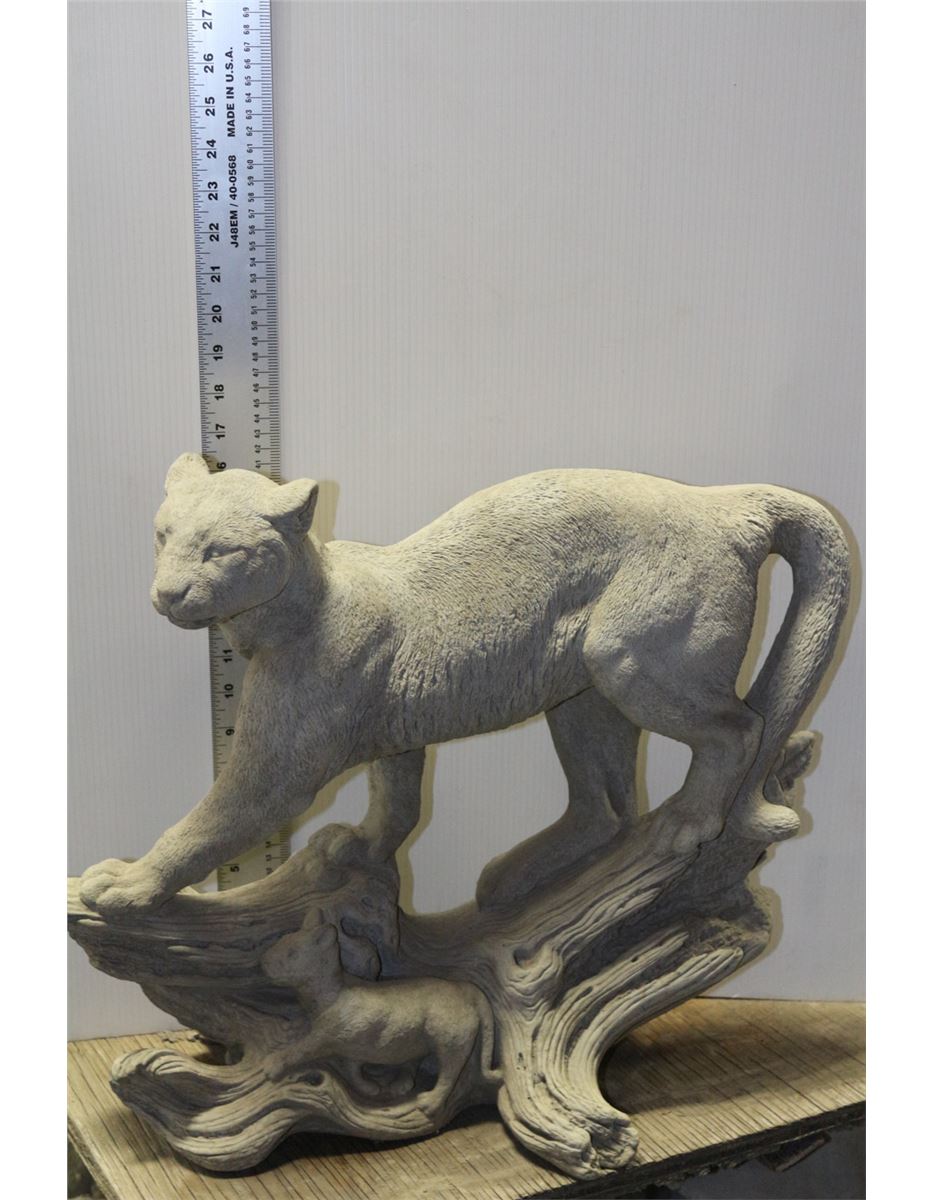 CONCRETE COUGAR ON LOG LAWN ORNAMENT