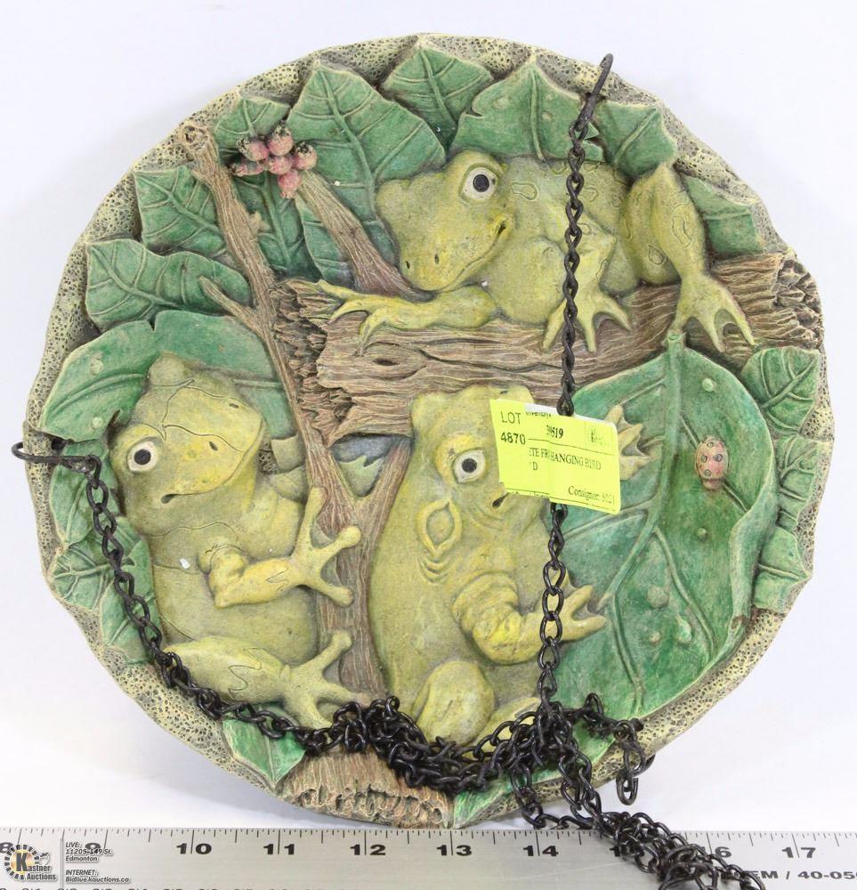 CONCRETE FROG HANGING BIRD BATH 9" D