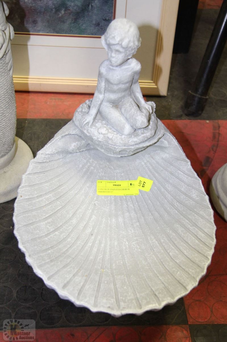CONCRETE PAINTED CHERUB BIRDBATH 15"