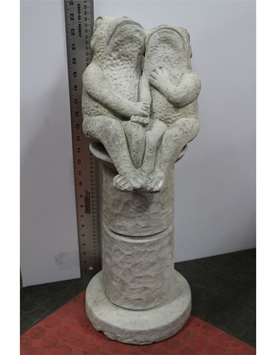 CONCRETE PEDESTAL W/ PAIR OF FROGS