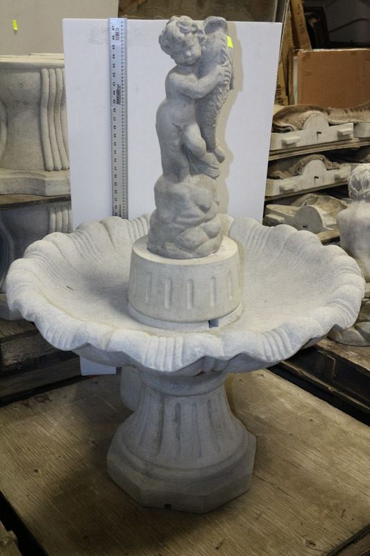 CONCRETE SINGLE LEAF LRG FOUNTAIN W/ CHERUB & FISH