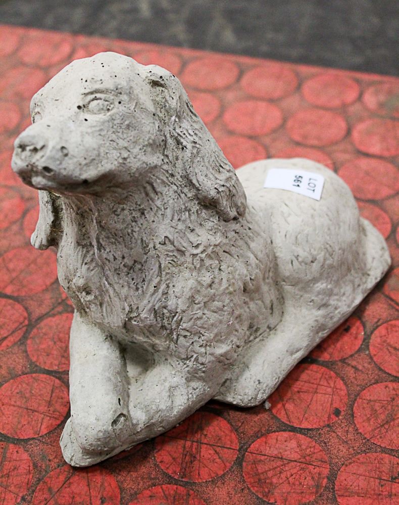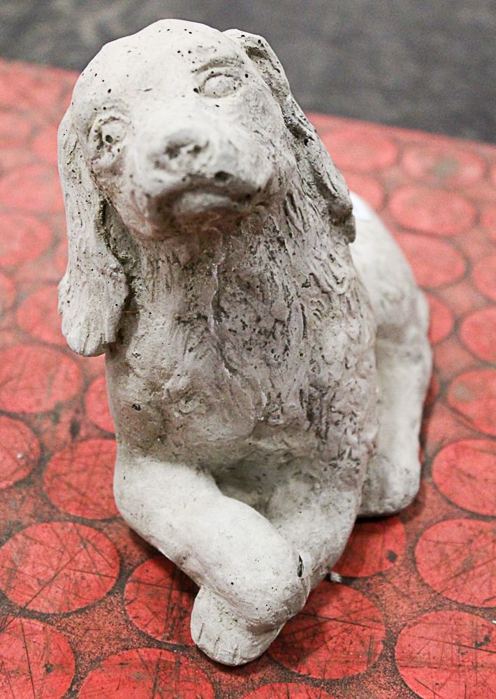 CONCRETE SITTING DOG 6 INCH LONG STATUE