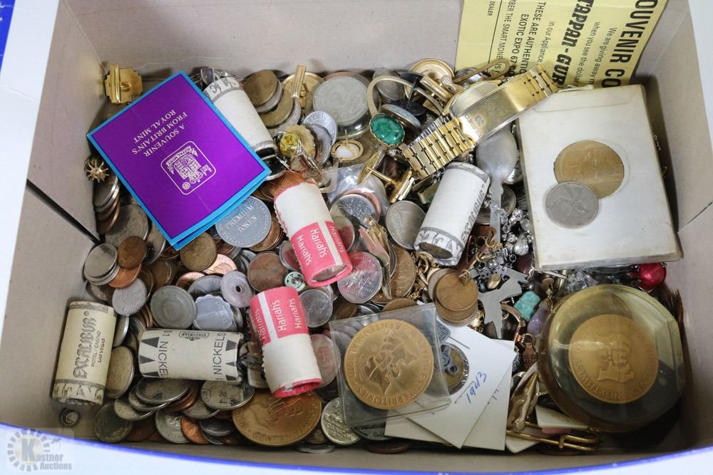 CONTAINER CONTAINS COINS,JEWELLERY AND MORE