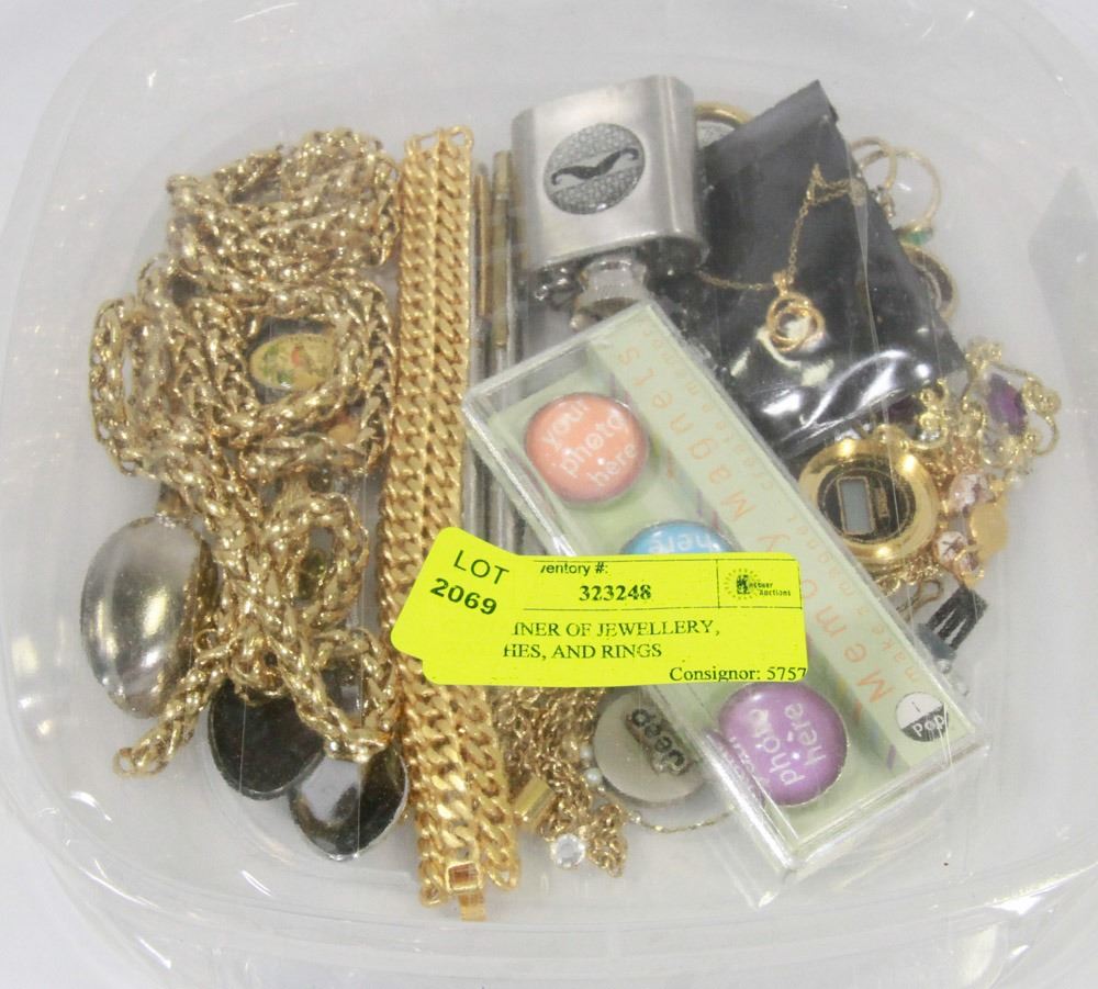 CONTAINER OF JEWELRY, WATCHES, AND RINGS