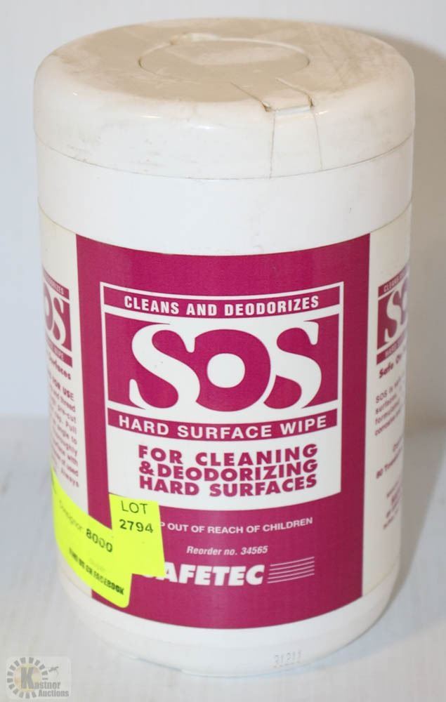 CONTAINER OF SOS HARD SURFACE WIPES