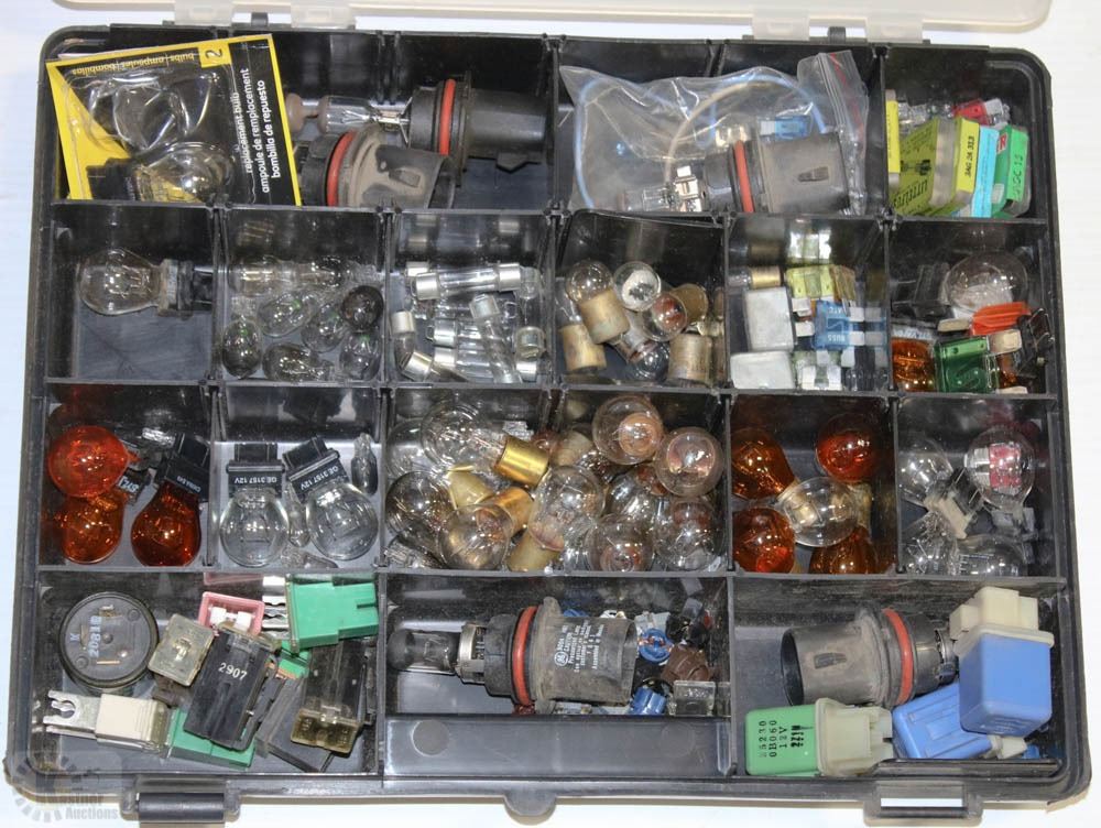 CONTAINER WITH AUTOMOTIVE LIGHT BULBS AND FUSES