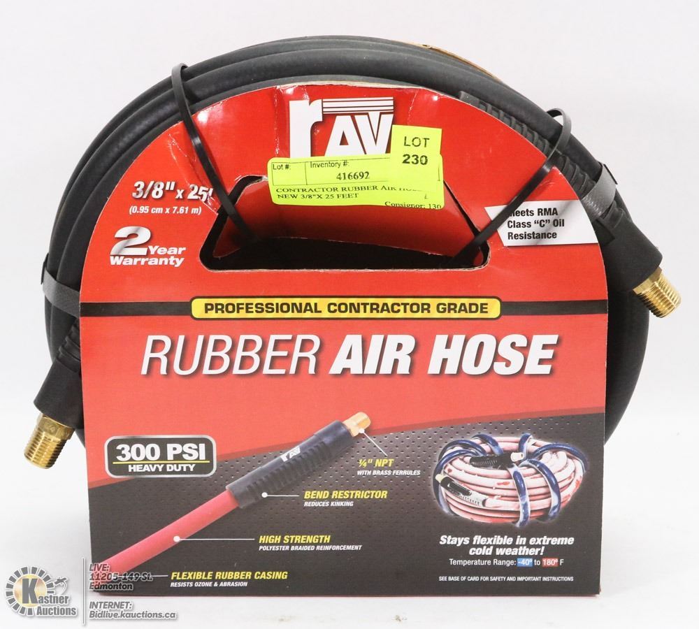 CONTRACTOR RUBBER AIR HOSE NEW 3/8 X 25 FEET