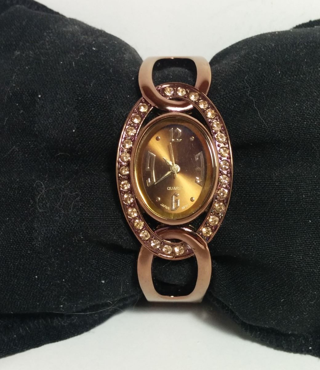 EMBELLISHED WITH CLEAR CRYSTALS , OVAL FACE, BRACELET INTEGRATED BAND, NEW BATTERY