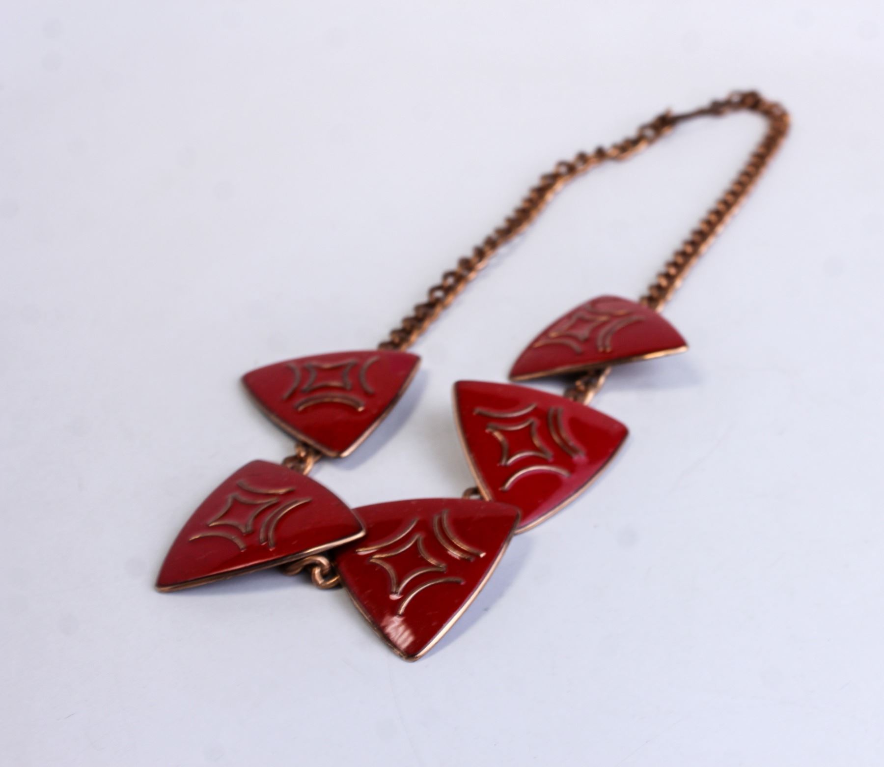 COPPER TONE WITH RED ENAMEL BRACELET 1950S