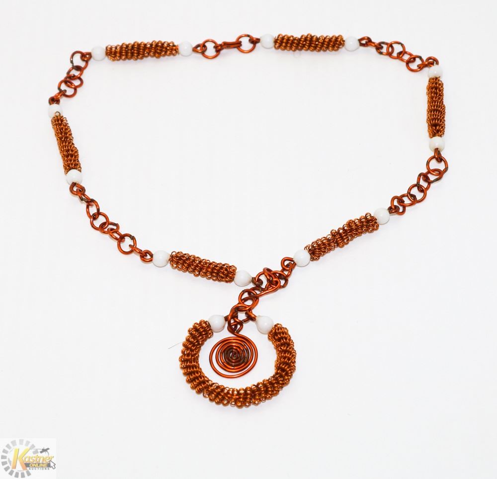 COPPER TWIST LINK NECKLACE WITH WHITE BEADS