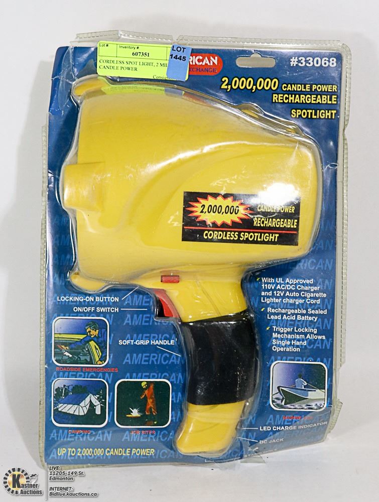 CORDLESS SPOT LIGHT, 2 MILLION CANDLE POWER
