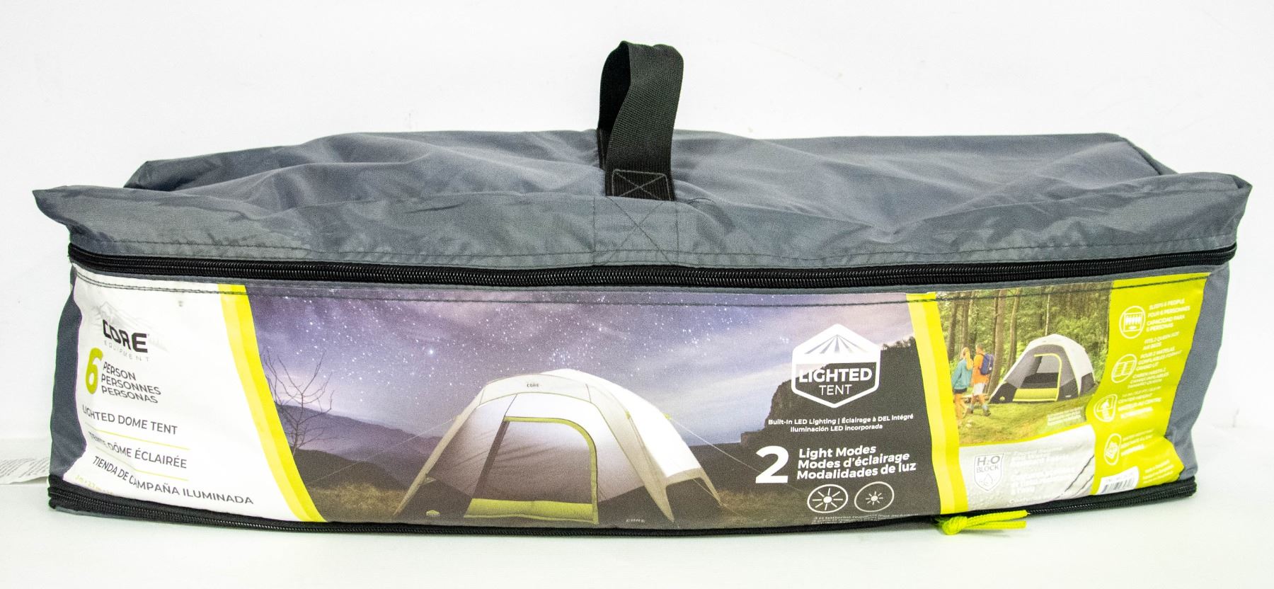 STAY BRIGHT WITH THE CORE 6 PERSON LIGHTED DOME TENT! FEATURING A NEW POLE STRUCTURE, THE 11 FT X 9 FT FLOOR SPACE WITH 66-INCH CENTER HEIGHT PROVIDES A LARGE LIVING SPACE WITH THE INCREASED INTERIOR VOLUME. SETUP CAMP IN MINUTES WITH THE