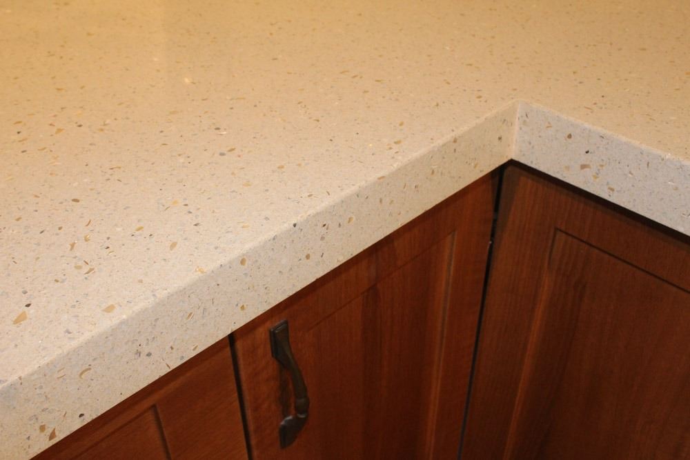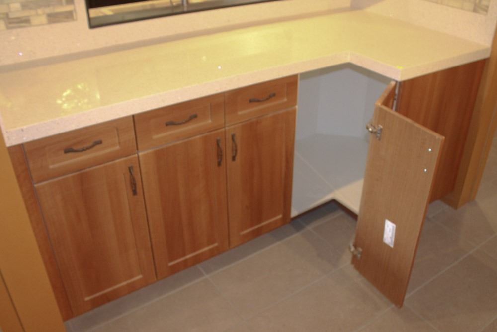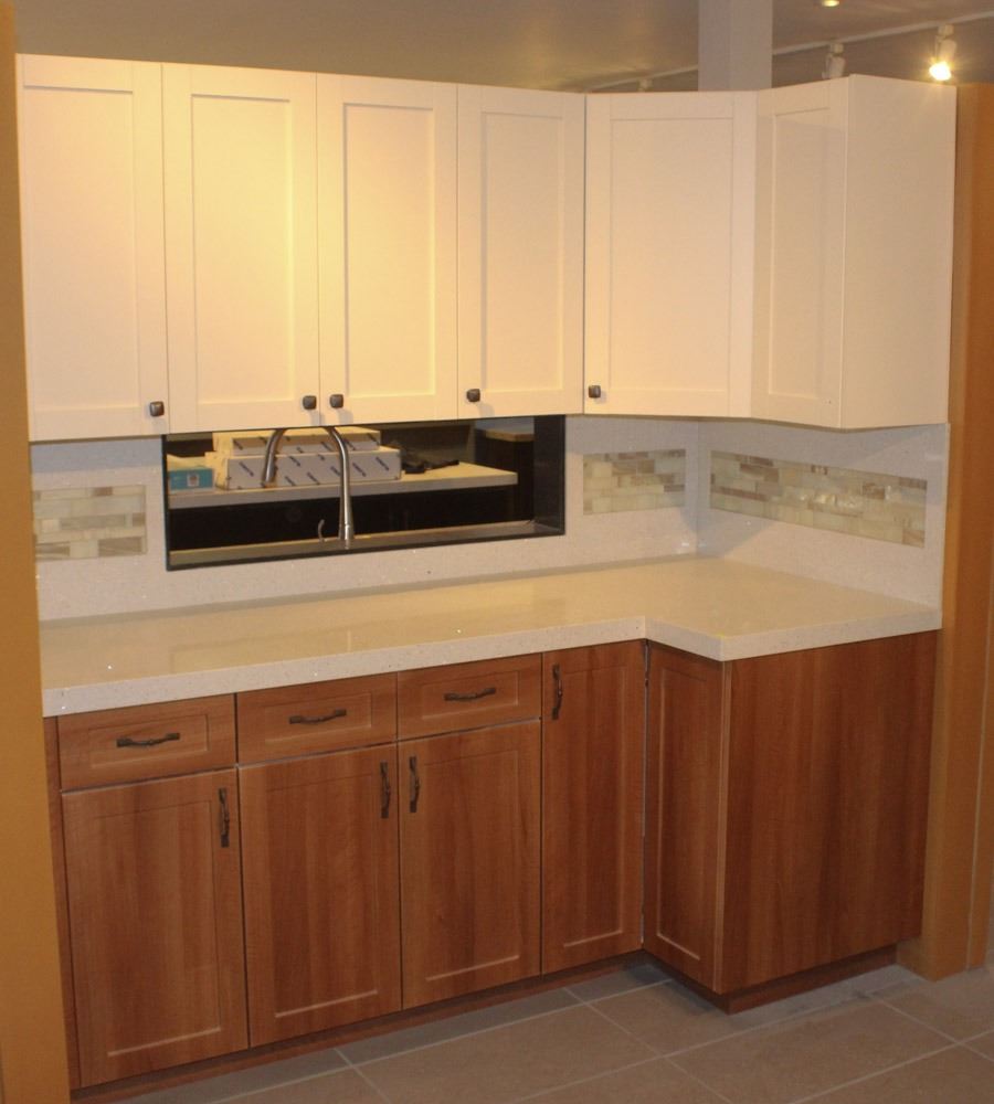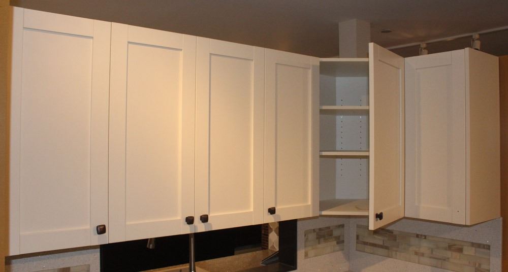 80" X 36" 36" WOOD STYLE COUNTER WITH 25" DEEP ROYAL IVORY GRANITE OVERLAY AND 30" TALL X 13" DEEP WHITE CUPBOARDS **BUYER IS RESPONSIBLE FOR DISASSEMBLY AND REMOVAL**