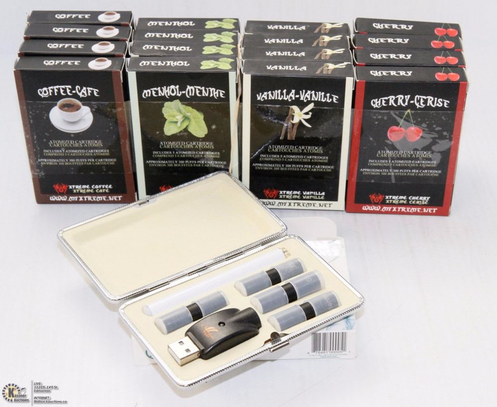CHARGER, CARRY CASE AND 80 ASSORTED FLAVOUR CARTRIDGES. RETAIL $200+