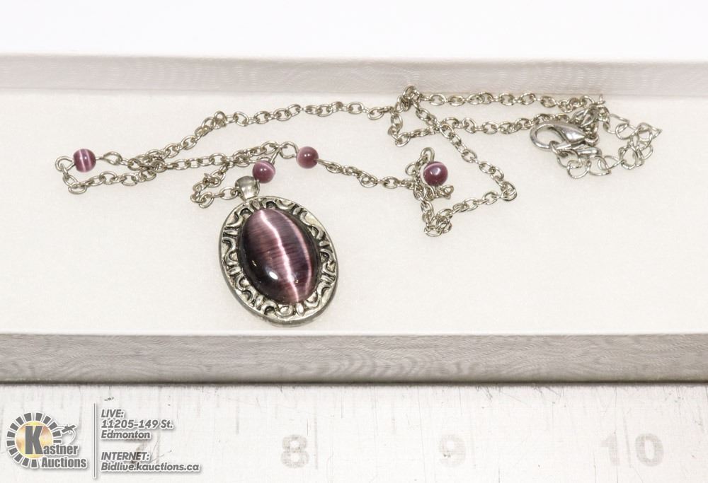 CHAIN WITH PURPLE STONE PENDANT FROM ESTATE.