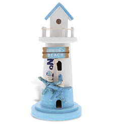 CoTa Global Blue Mist Lighthouse Decor - Handmade and Crafted Wooden Lighthouse Decoration with Ocean Blue Starfish, Decorative Beach Style Tabletop Centerpiece - 8.5 Inch