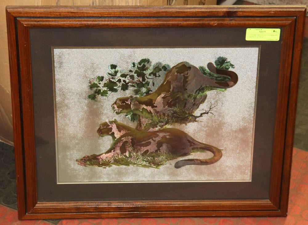 "COUGARS" METALLIC ETCHING BY F. SWENEY 22.5X19"