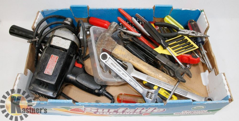 ACCESSORIES, CHANNEL LOCK PLIERS AND ASSORTED TOOLS.