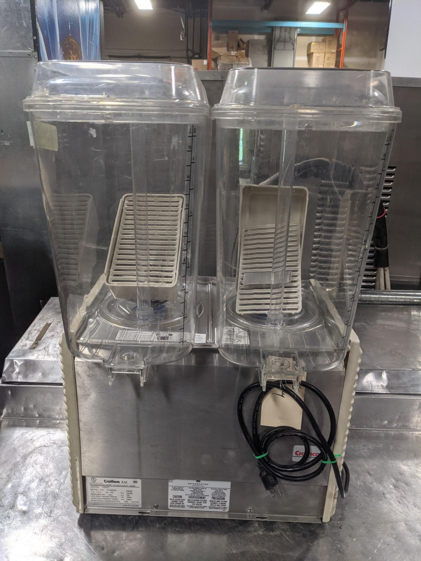 CRATHCO DOUBLE JUICE DISPENSER. MODEL#D25-4. 11 V.A.C, 60HZ, 5.5AMP 635 WATTS