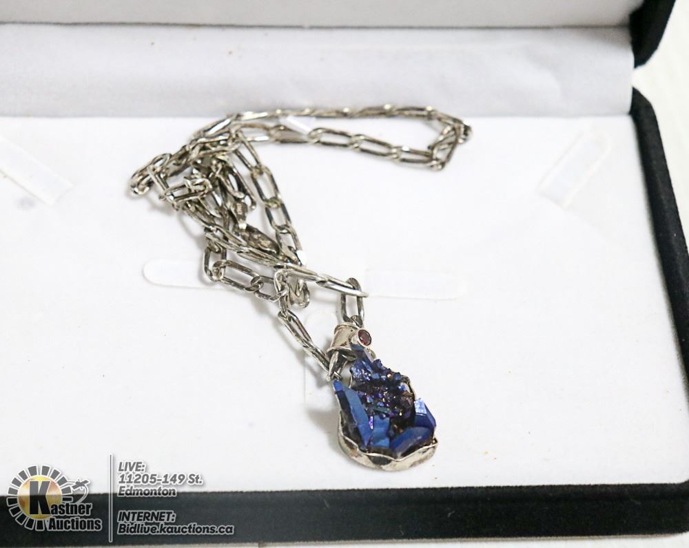 CRYSTAL NECKLACE WITH .925 SILVER INSERT & CHAIN.