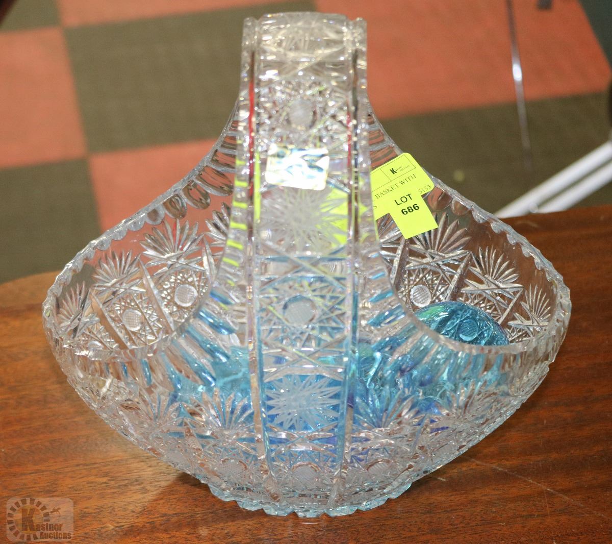 CRYSTAL PINWHEEL BASKET WITH BLUE GLASS BALLS