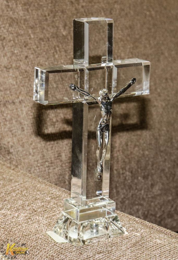 CRYSTAL STANDING CROSS WITH JESUS DEPICTION