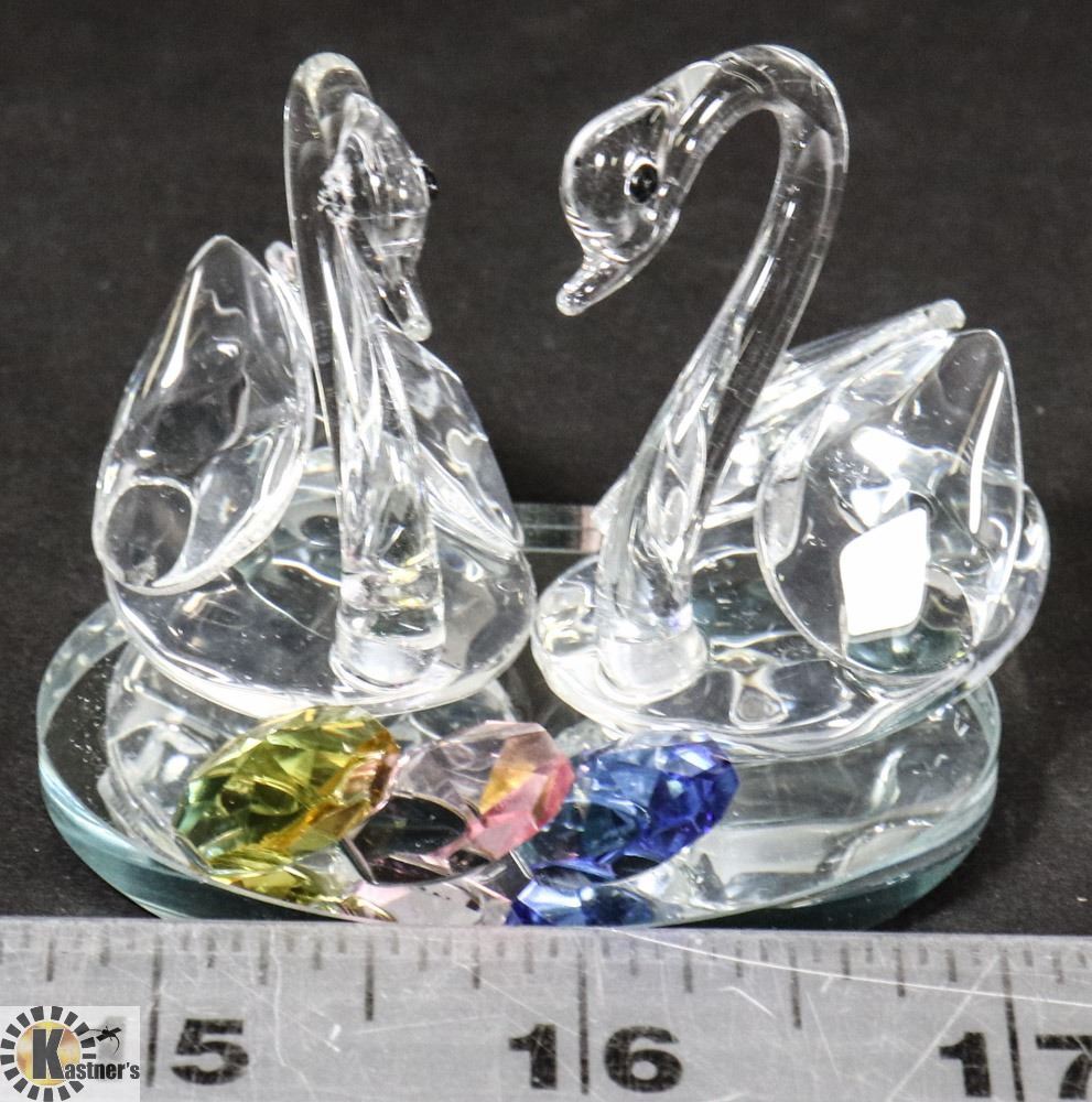 CRYSTAL SWANS WITH MULTI COLOR CRYSTAL STONES