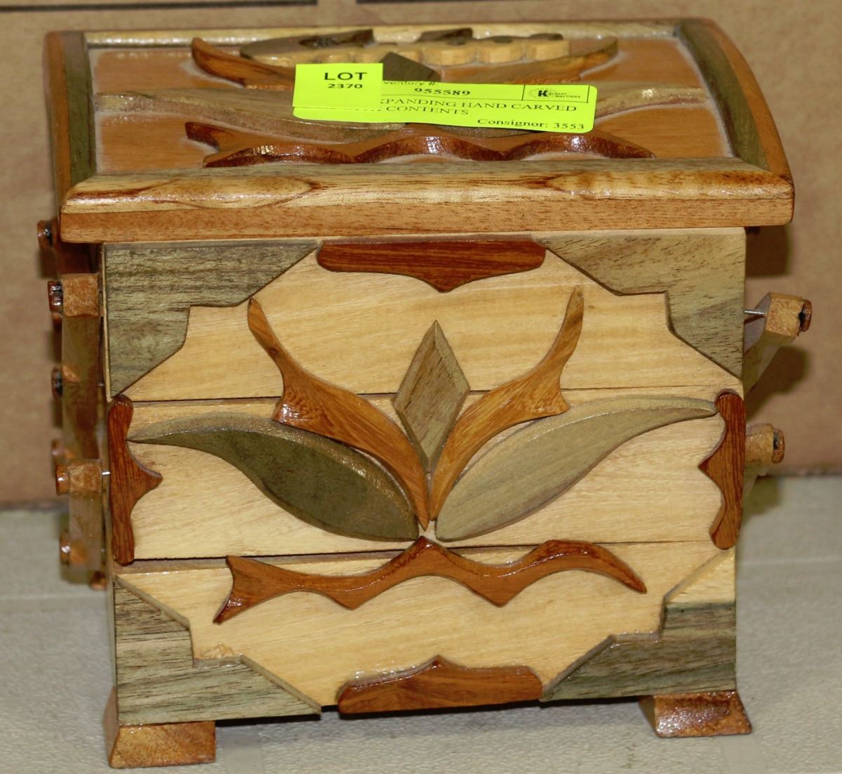 CUBAN EXPANDING HAND CARVED BOX WITH CONTENTS