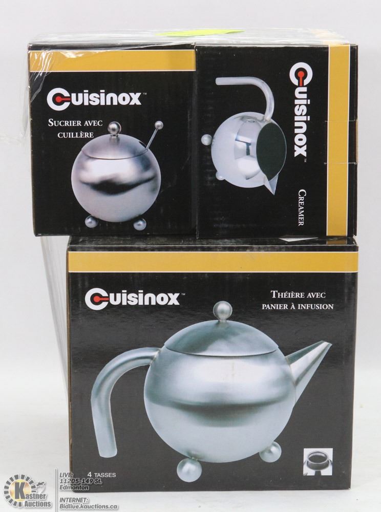 CUISINOX TEA SET: CREAMER, TEA POT, SUGAR BOWL
