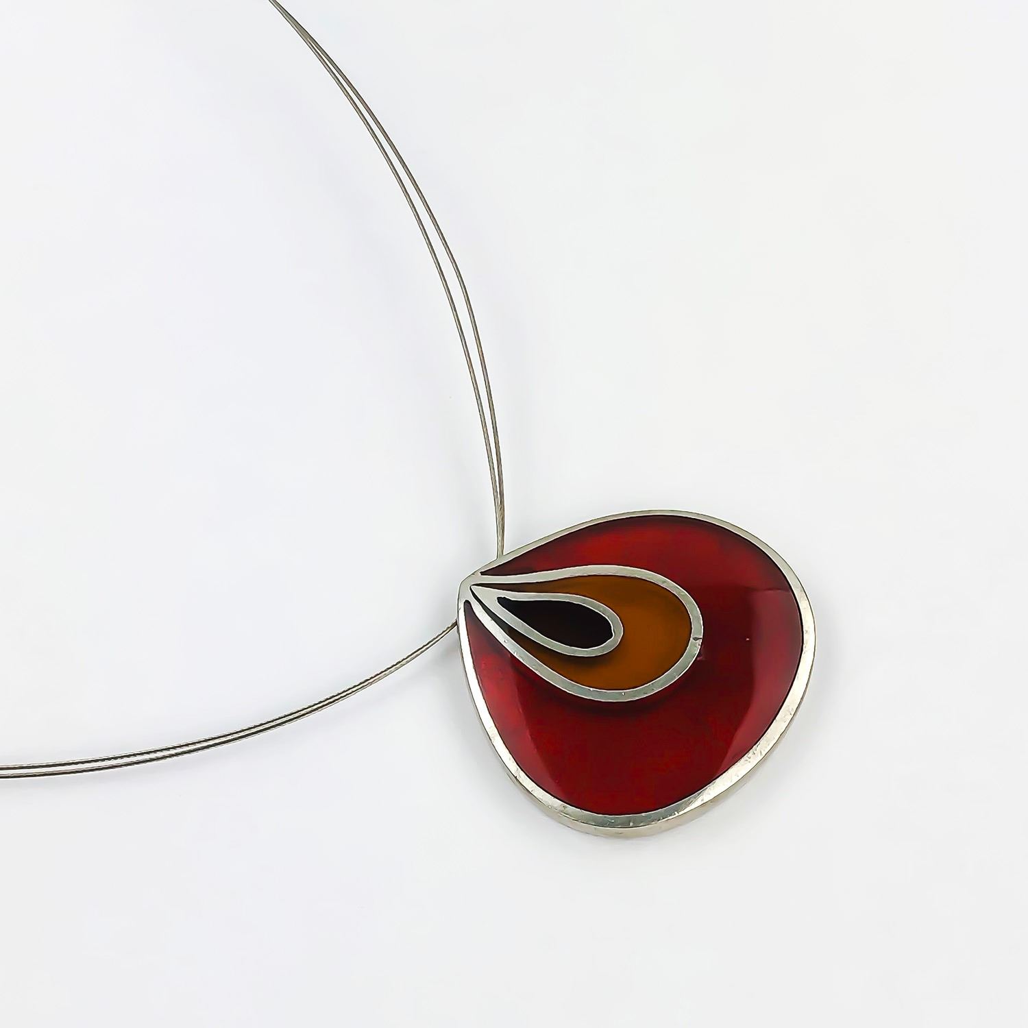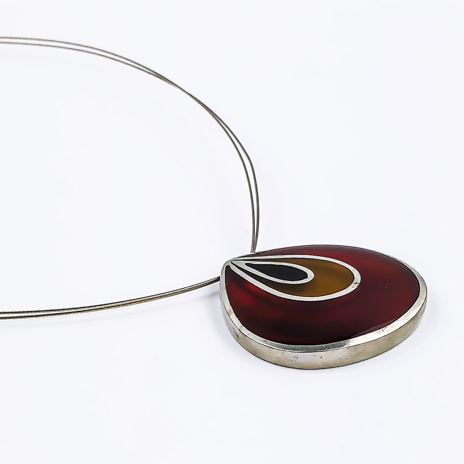 #8415 - THREE COLOR PENDANT. PENDANT IS FIXED IN POSITION ON THE WIRE. MARKED CULTURE AT THE CLASP AND MIX ON THE REVERSE. MEASURES: 14” (35.5 CM) WITH 2” (5 CM) EXTENSION.