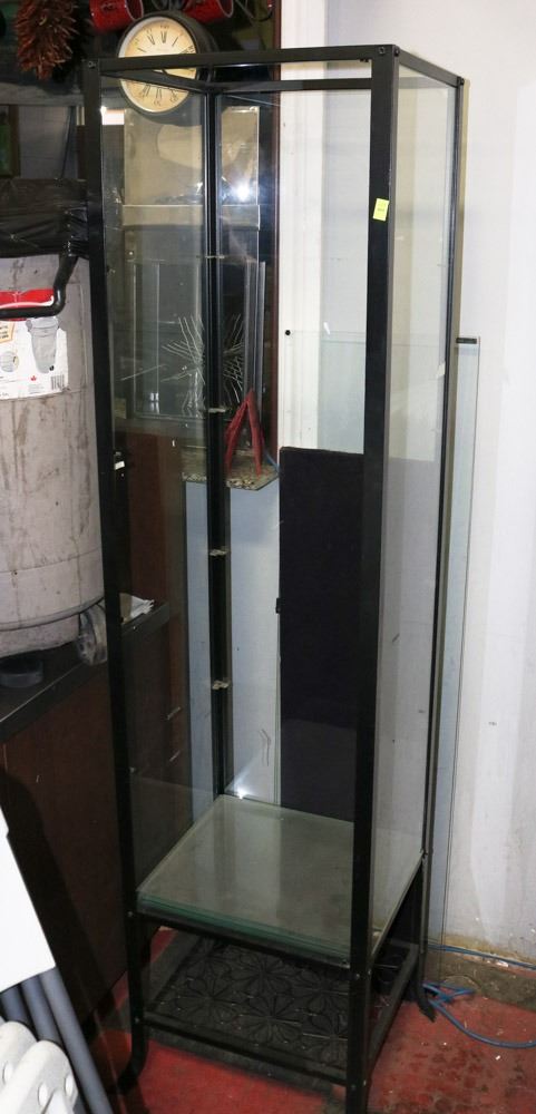 CURIO CABINET WITH GLASS AS IS NEEDS A HINGE