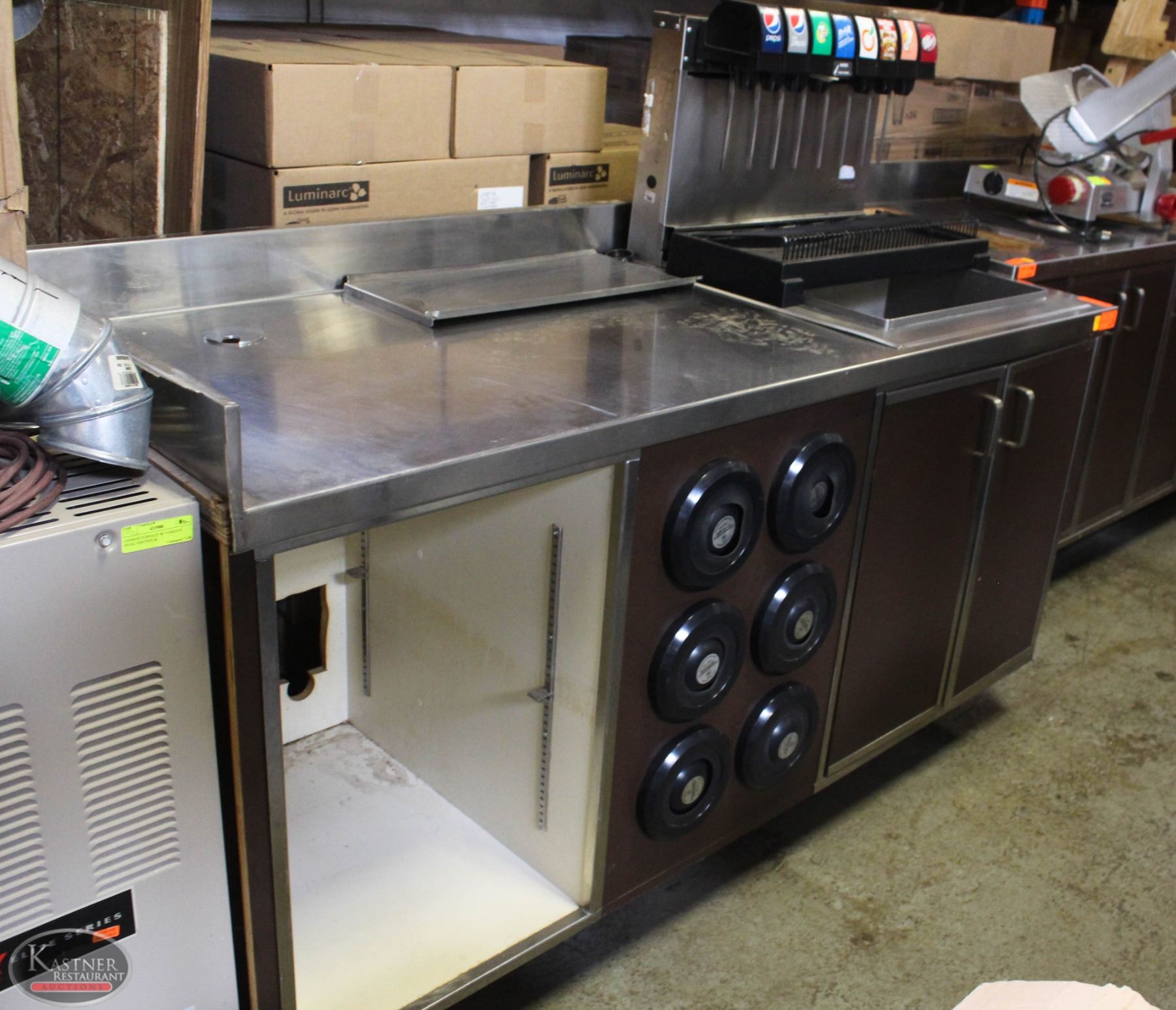 SOFT-DRINK DISPENSER(EMBEDDED) INCLUDING COMPRESSOR, 6 CUP DISPENSER. 69.5" X 27" X 36".