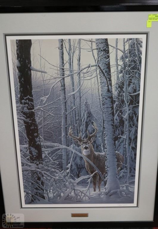 IN WINTER FOREST 1994 SIGNED PRINT #535/950 WITH COA,FRAMED 31"X42"
