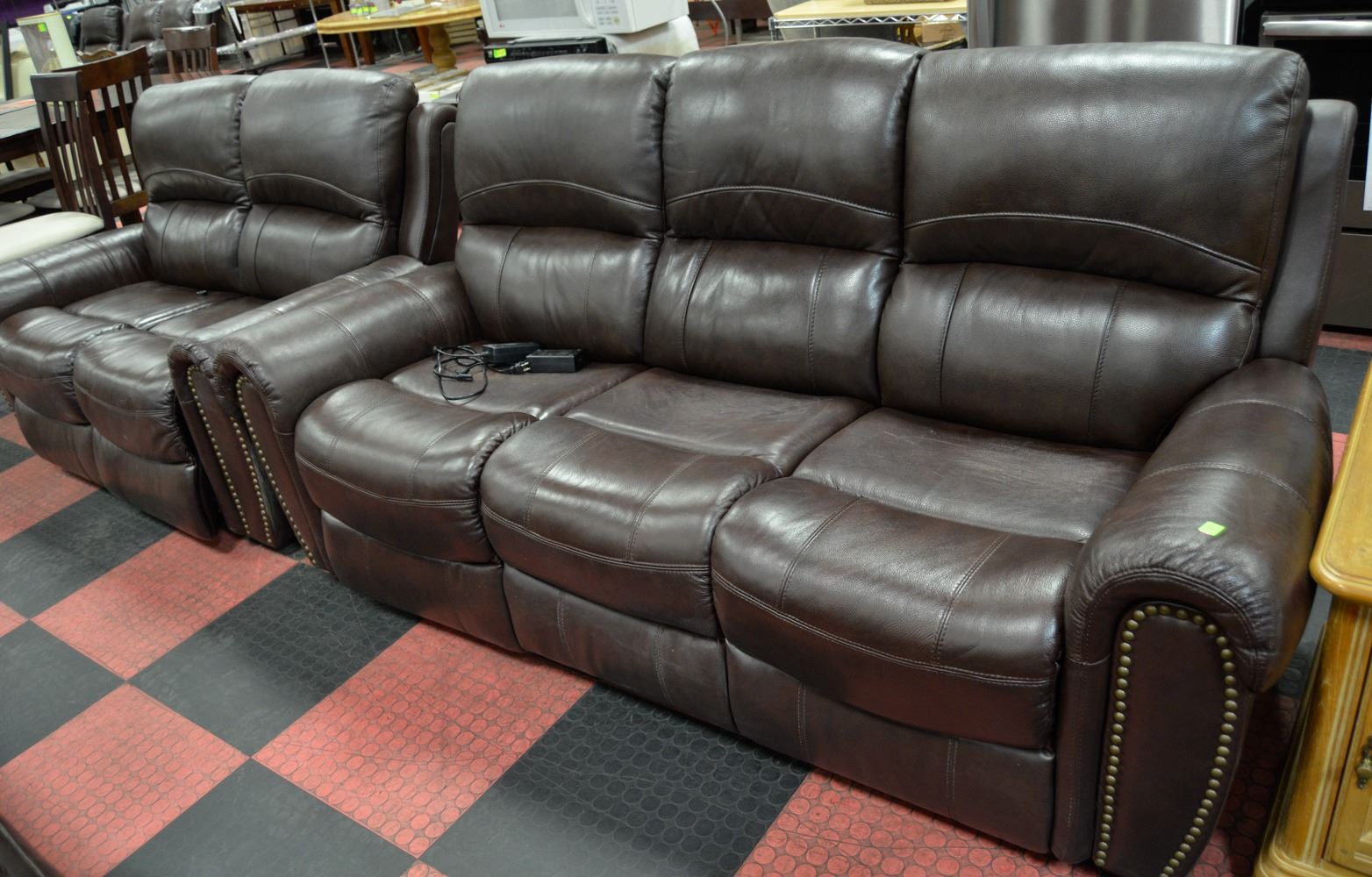 RECLINING SOFA WITH LOVE SEAT. HAS SCRATCHES.