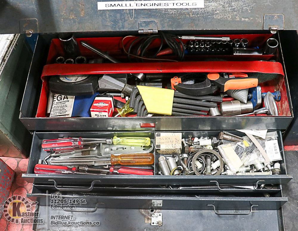 DARK GRAY TOOLBOX FULL OF TOOLS