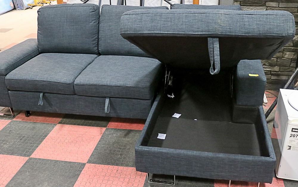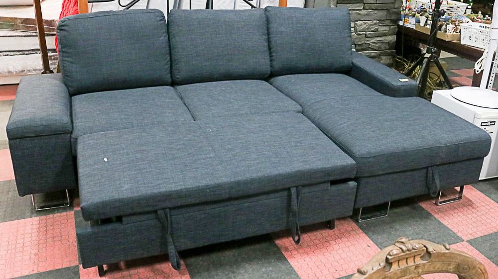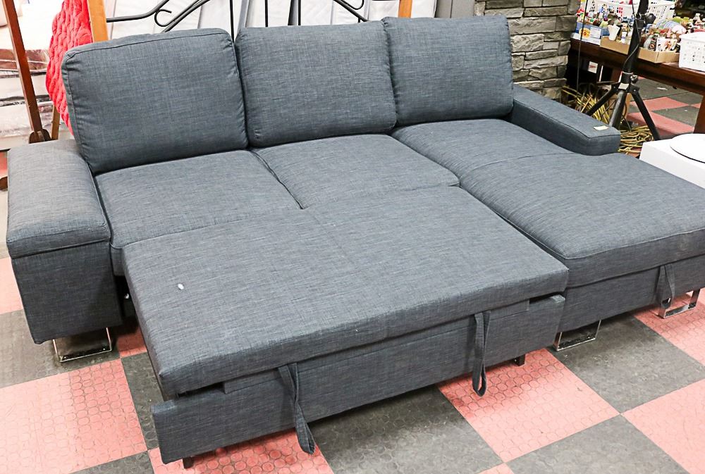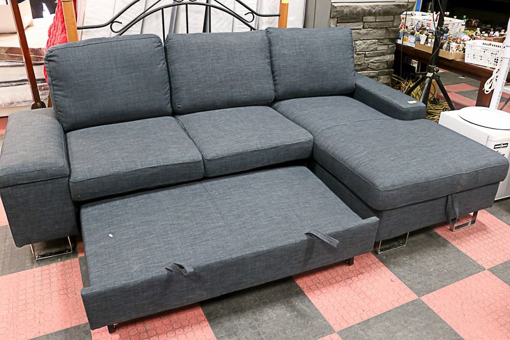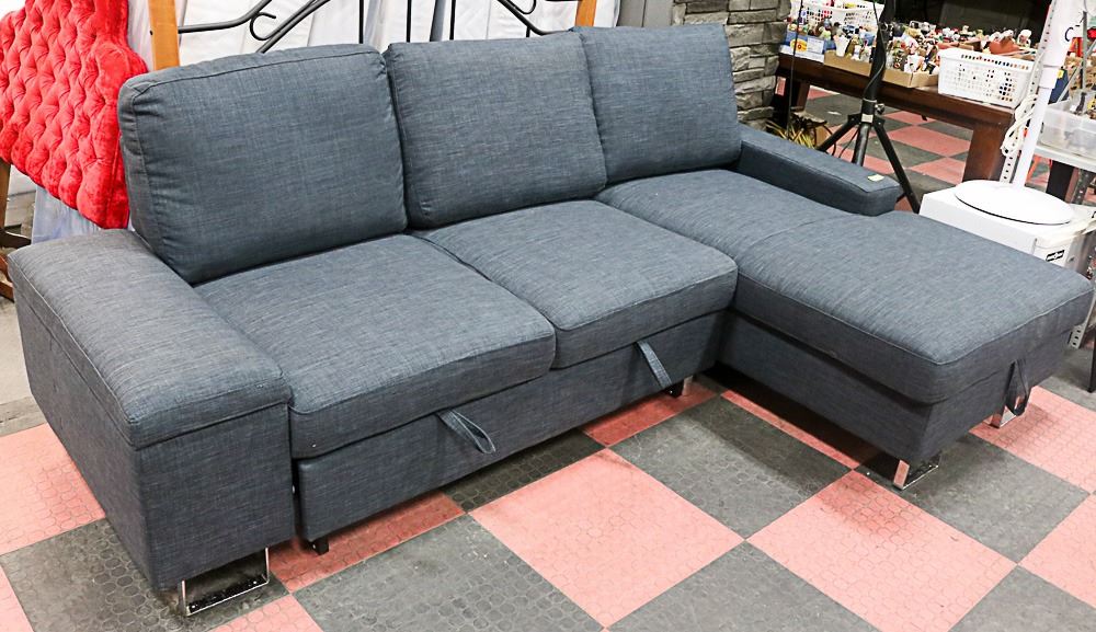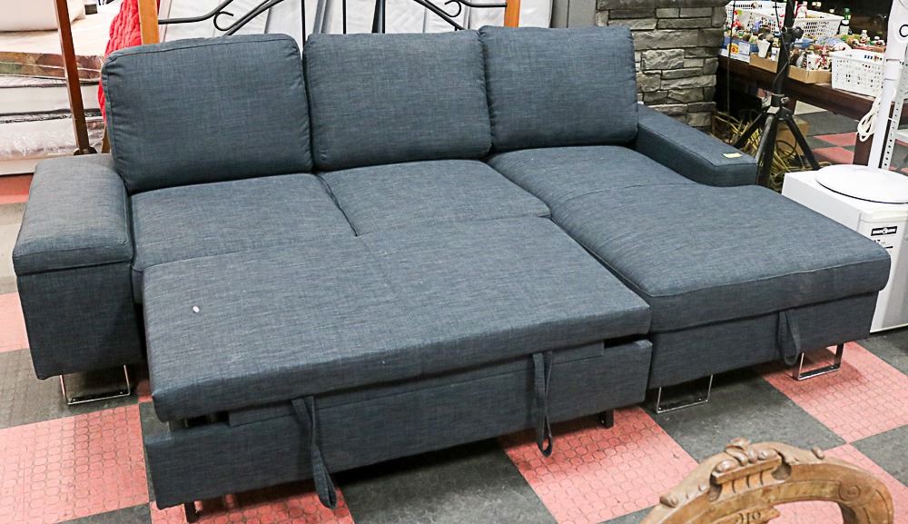 DARK GREY FABRIC SECTIONAL WITH HIDE-A-BED