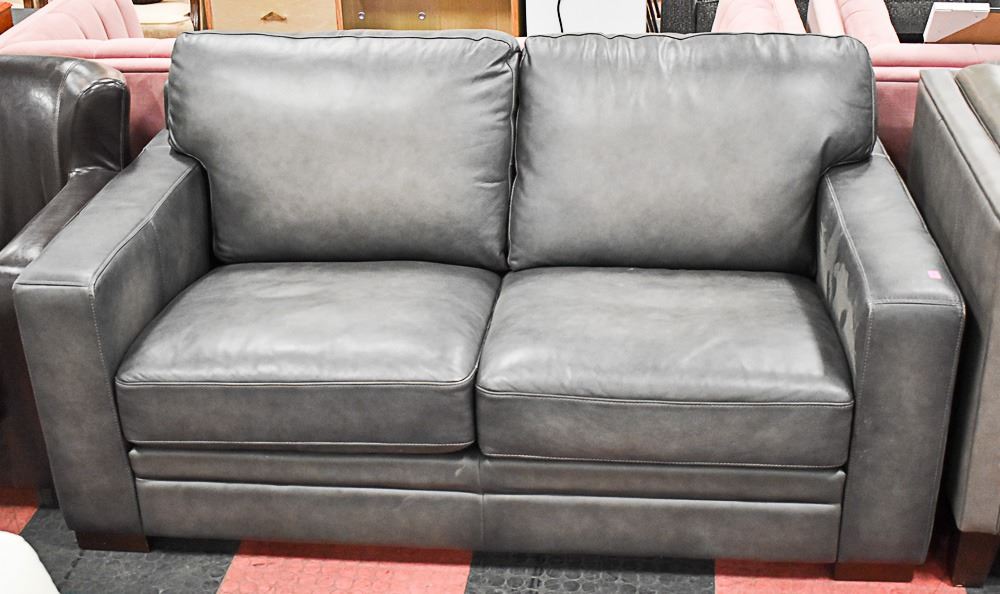 DARK GREY LEATHER LOVESEAT 69"