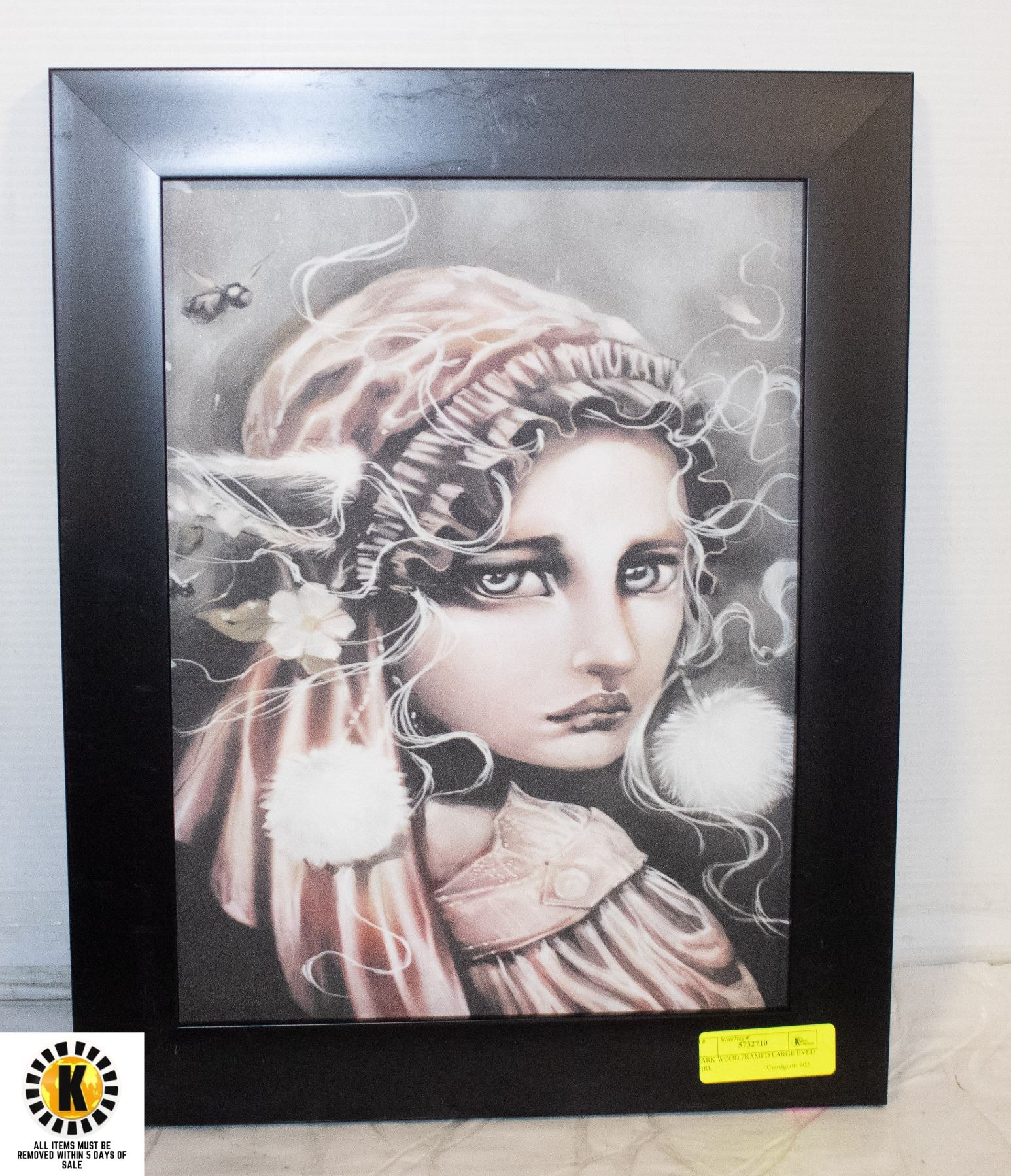 HARDBOARD ARTWORK "BLUE EYED GIRL IN HOOD" (15.25"L X 19.25"H)