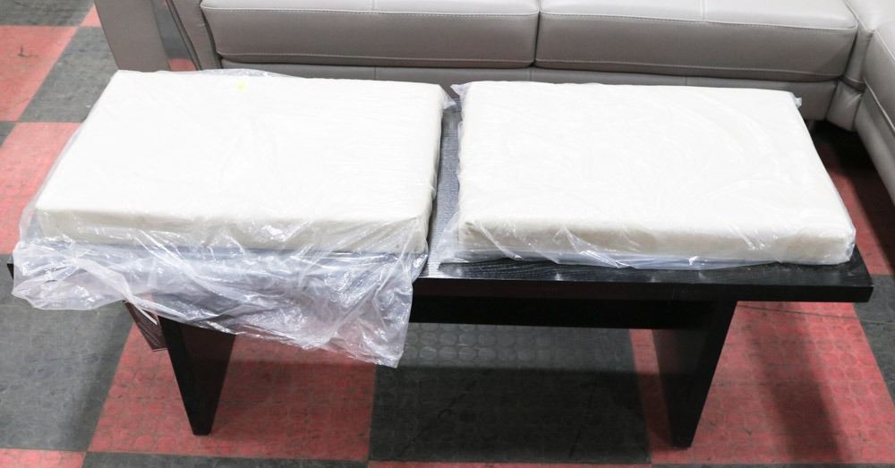 DARK WOOD TONE AND MICROFIBRE BENCH, 18.5"X50"