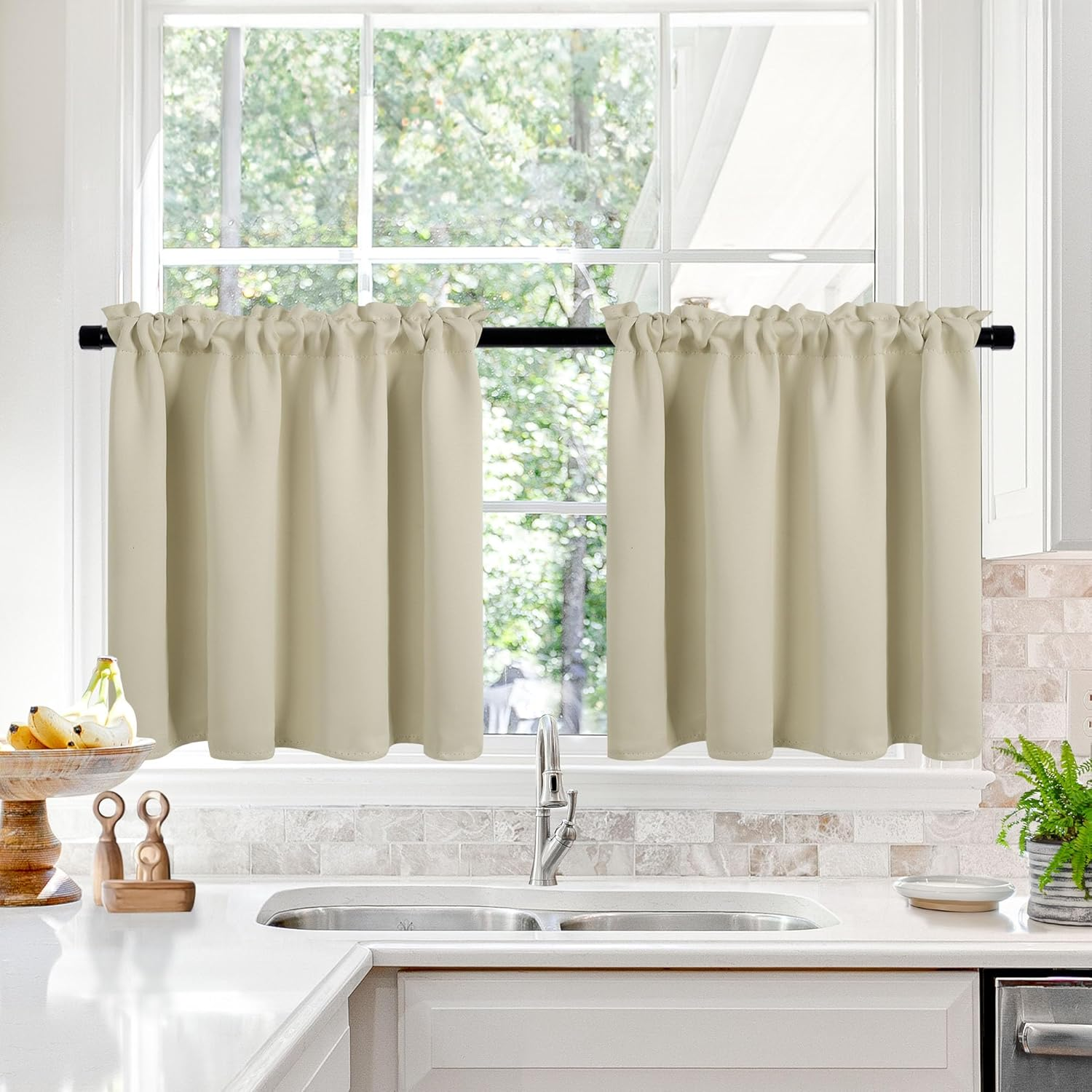 DECONOVO BATHROOM CURTAINS WINDOW, CAFE CURTAINS 30 INCH LENGTH, SHORT CURTAINS FOR BEDROOM BLACKOUT, SMALL WINDOW CURTAINS, RV CURTAINS VALANCES, 2 PANELS, BEIGE, W30 X L30
