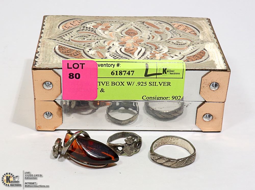 GEMSTONE, .925 SILVER MEN'S RING SIZE 11, AND STERLING SILVER LADIES RING SIZE 6 - JEWELLERY